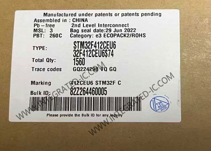 ریزکنترلکننده STM32F412CEU6 MCU 100MHz 32Bit IC ریزکنترلکننده UFQFPN48 MCU تعبیهشده