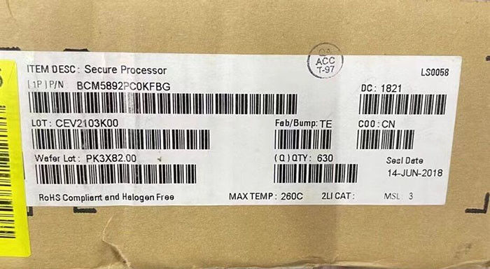 BCM5892PC0KFBG یک پردازنده امنیتی است که متعلق به دسته مایکرو پروسسور های جاسازی شده است.