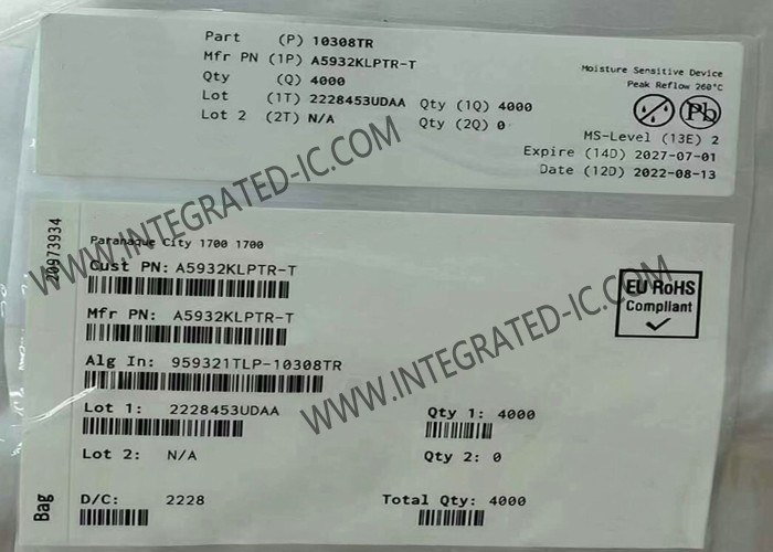 | برجسته کردن: | A5932KLPTR,A5932KLPTR تراشه مدار یکپارچه,کنترل کننده فن بدون سنسور سینوسایدال,A5932KLPTR Integrated Circuit Chip,Sinusoidal Sensorless Fan Controller | ||